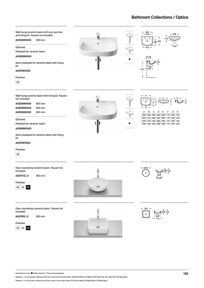 Replace (..) in the product reference with the code of the chosen finish: 00 Glossy White, 62 Matt White, 08 Matt Blac
