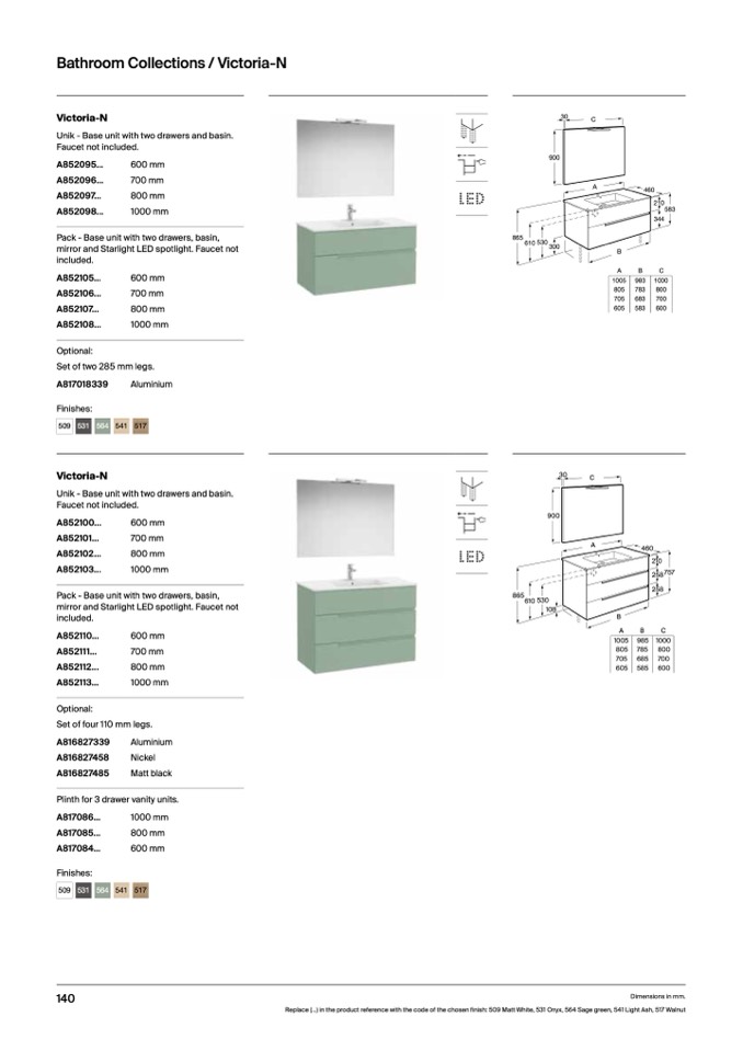 Replace (...) in the product reference with the code of the chosen finish: 509 Matt White, 531 Onyx, 564 Sage green, 541 Light Ash, 517 Walnut