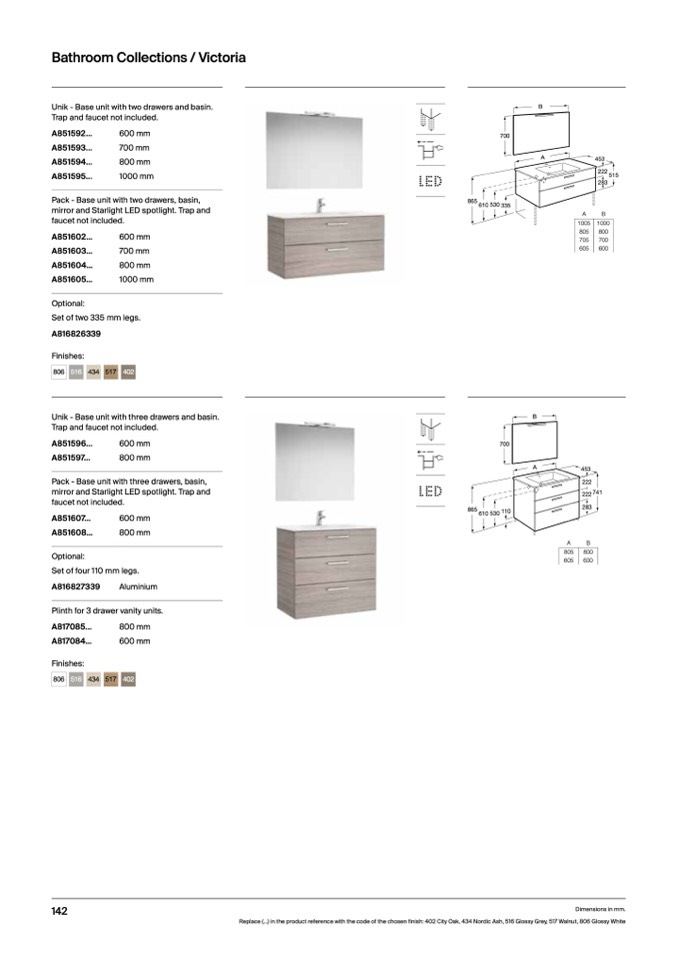 Replace (...) in the product reference with the code of the chosen finish: 402 City Oak, 434 Nordic Ash, 516 Glossy Grey, 517 Walnut, 806 Glossy White