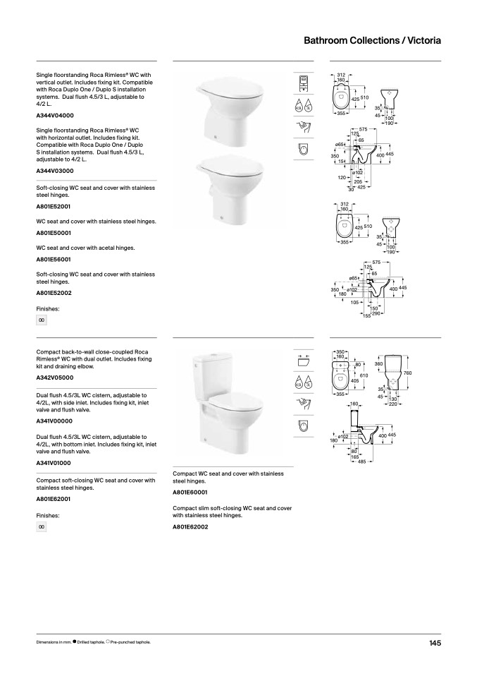 systems. Dual flush 4.5/3 L, adjustable t