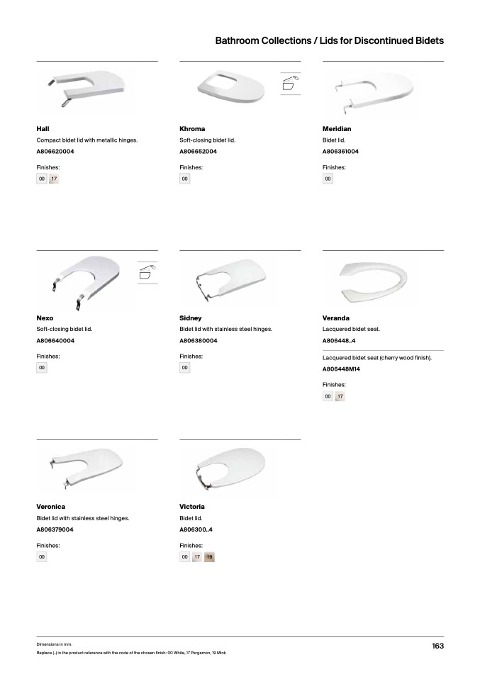 Replace (..) in the product reference with the code of the chosen finish: 00 White, 17 Pergamon, 19 Min