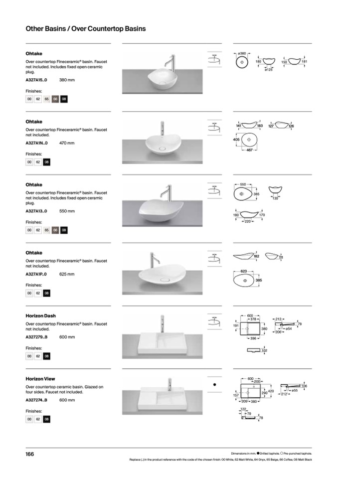 Replace (..) in the product reference with the code of the chosen finish: 00 White, 62 Matt White, 64 Onyx, 65 Beige, 66 Coffee, 08 Matt Black