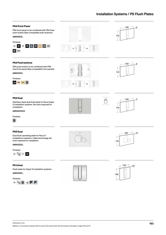 Replace (..) in the product reference with the code of the chosen finish: See the finishes of the plates on pages 176 and 177