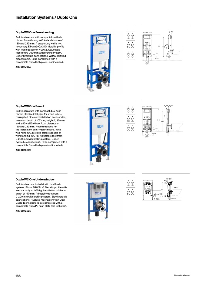 minimum depth of 107 mm, height 1,190 m