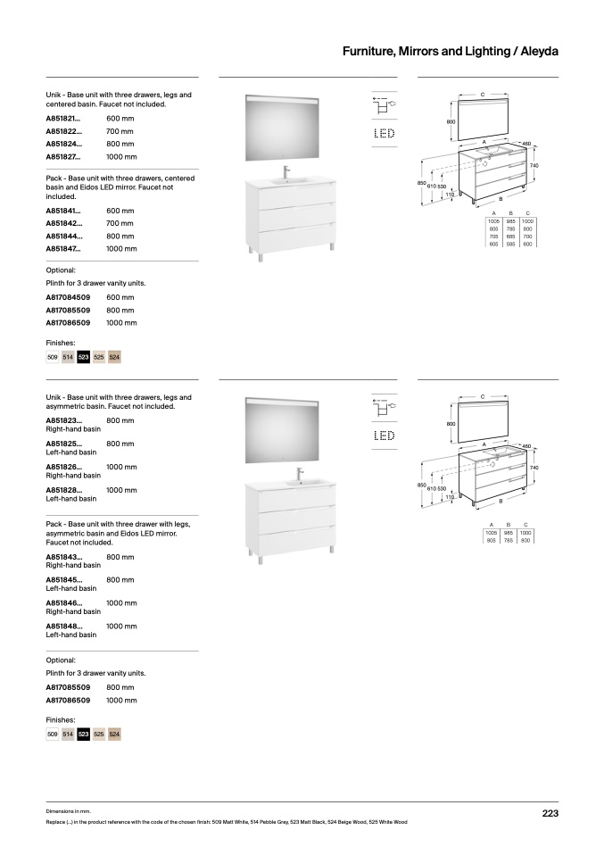 Replace (...) in the product reference with the code of the chosen finish: 509 Matt White, 514 Pebble Grey, 523 Matt Black, 524 Beige Wood, 525 White Wood