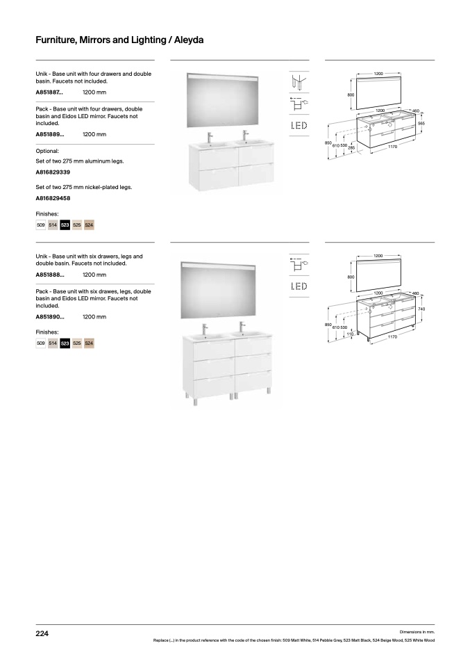 Replace (...) in the product reference with the code of the chosen finish: 509 Matt White, 514 Pebble Grey, 523 Matt Black, 524 Beige Wood, 525 White Wood