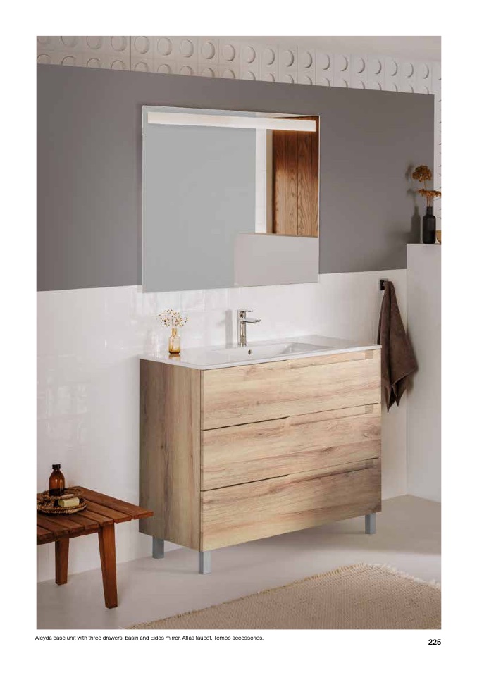 Aleyda base unit with three drawers, basin and Eidos mirror, Atlas faucet, Tempo accessories