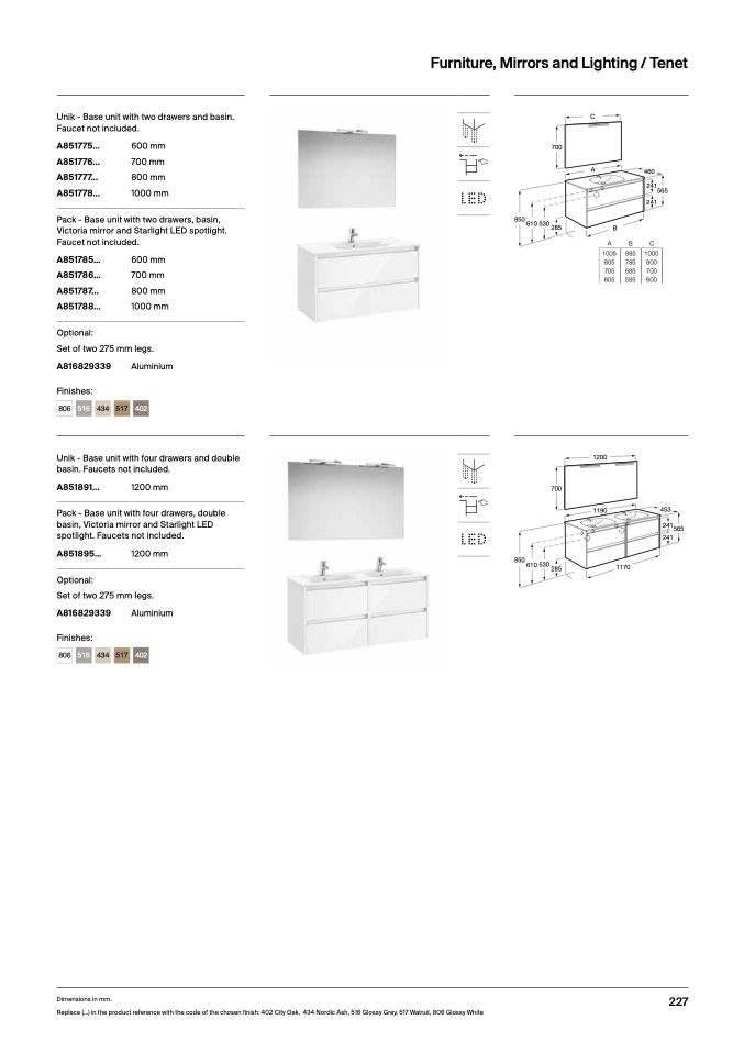 Replace (...) in the product reference with the code of the chosen finish: 402 City Oak, 434 Nordic Ash, 516 Glossy Grey, 517 Walnut, 806 Glossy White