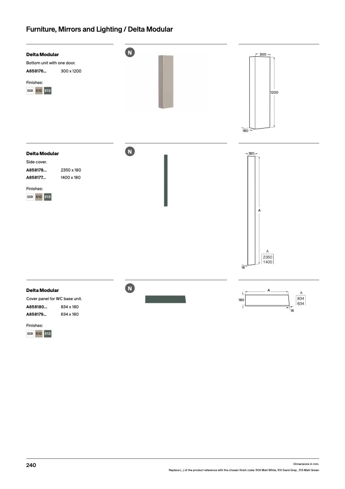 Replace (...) of the product reference with the chosen finish code: 509 Matt White, 510 Sand Grey , 513 Matt Green