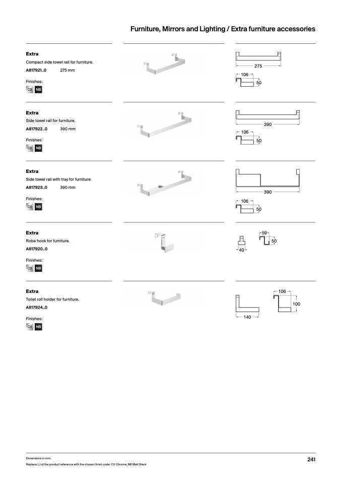 Replace (..) of the product reference with the chosen finish code: C0 Chrome, NB Matt Black