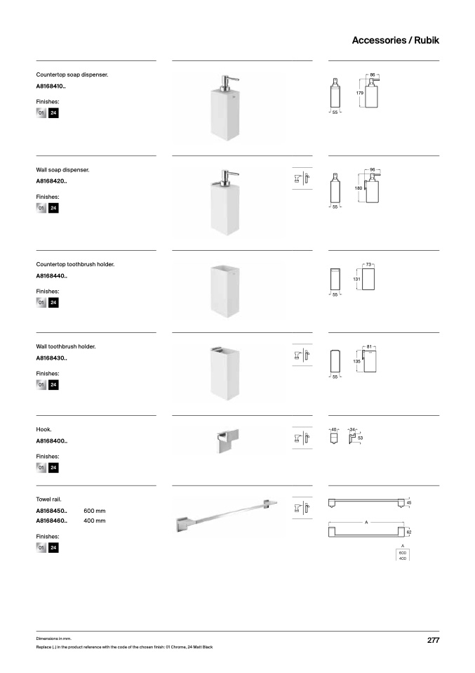 Replace (..) in the product reference with the code of the chosen finish: 01 Chrome, 24 Matt Blac
