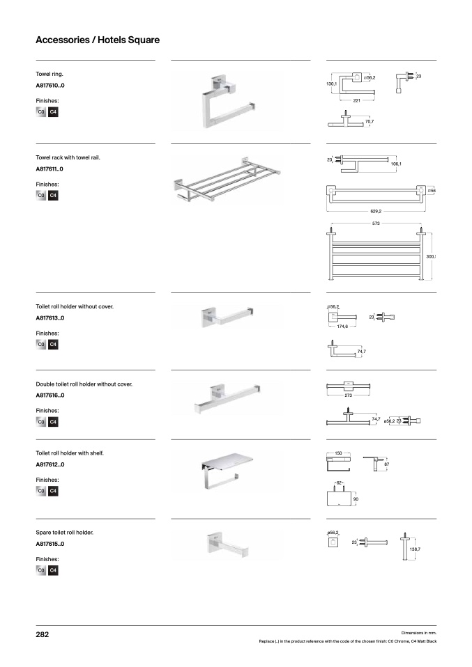 Replace (..) in the product reference with the code of the chosen finish: C0 Chrome, C4 Matt Black