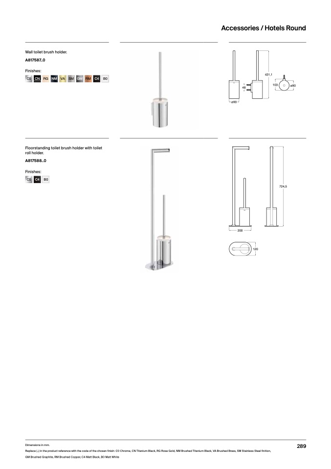 Replace (..) in the product reference with the code of the chosen finish: C0 Chrome, CN Titanium Black, RG Rose Gold, NM Brushed Titanium Black, VA Brushed Brass, SM Stainless Steel finition