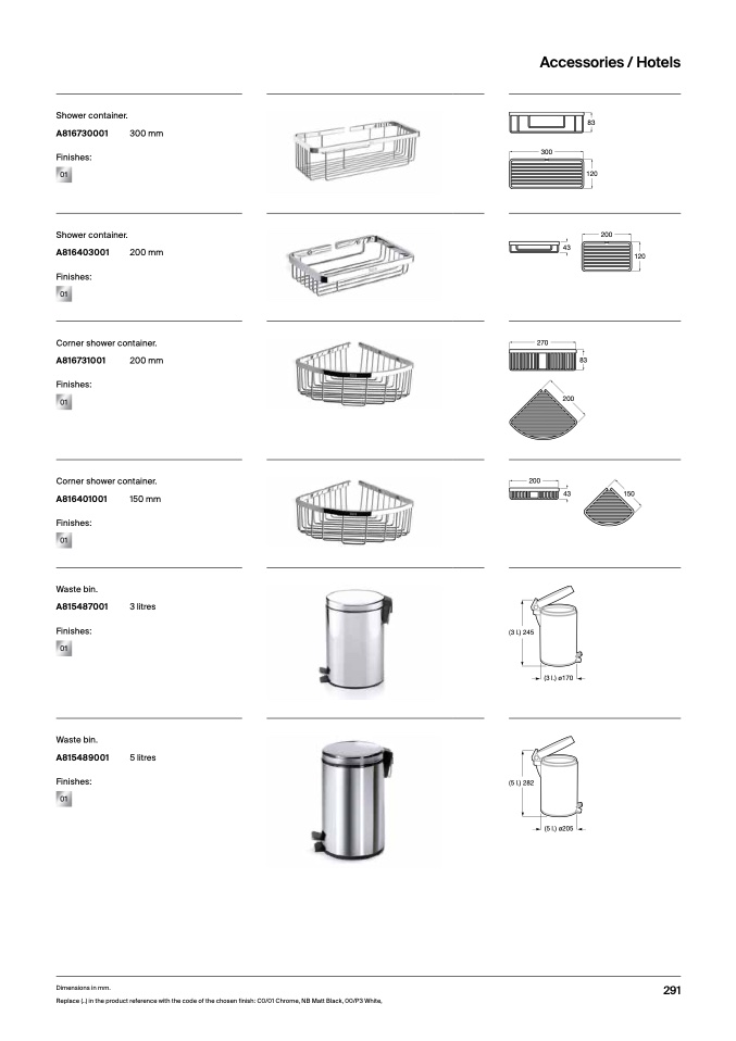 Replace (..) in the product reference with the code of the chosen finish: C0/01 Chrome, NB Matt Black, 00/P3 White