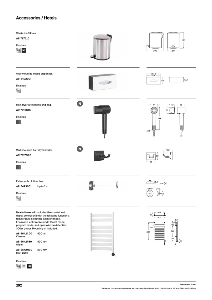 Replace (..) in the product reference with the code of the chosen finish: C0/01 Chrome, NB Matt Black, 00/P3 White,