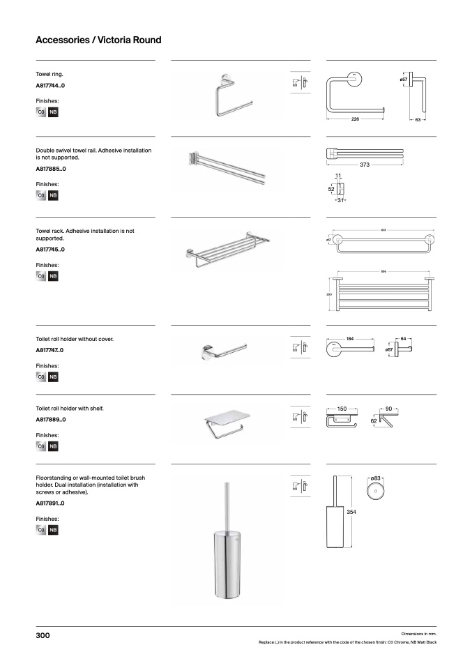 Replace (..) in the product reference with the code of the chosen finish: C0 Chrome, NB Matt Black