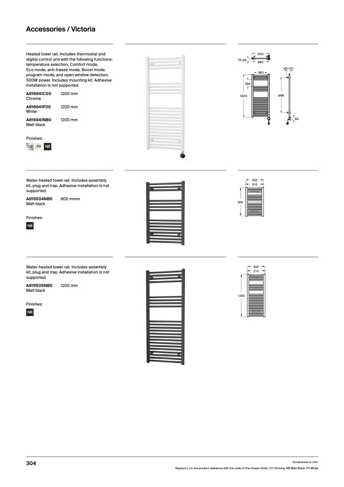 Replace (..) in the product reference with the code of the chosen finish: C0 Chrome, NB Matt Black, P3 White