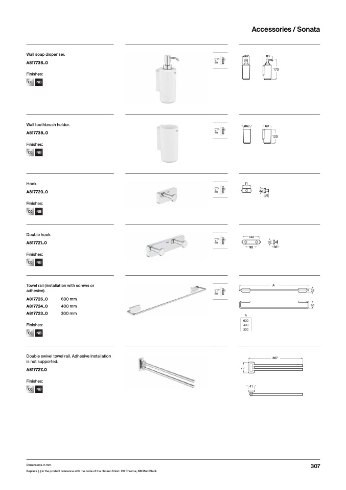 Replace (..) in the product reference with the code of the chosen finish: C0 Chrome, NB Matt Blac