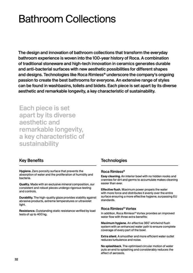 bathroom experience is woven into the 100-year history of Roca. A combinatio