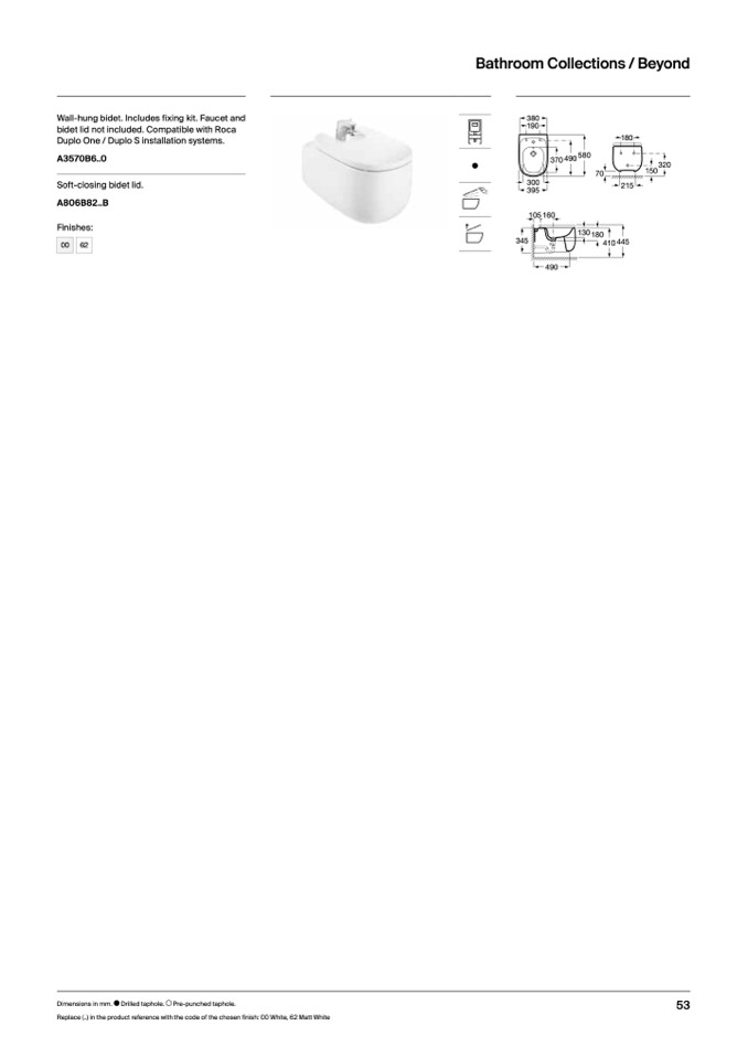 Replace (..) in the product reference with the code of the chosen finish: 00 White, 62 Matt White