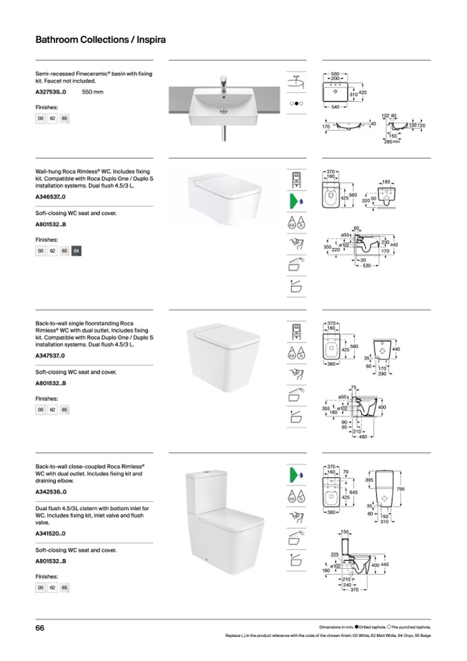 Replace (..) in the product reference with the code of the chosen finish: 00 White, 62 Matt White, 64 Onyx, 65 Beige