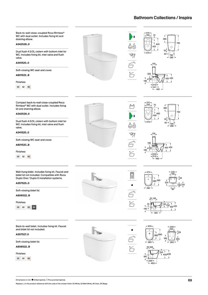 Replace (..) in the product reference with the code of the chosen finish: 00 White, 62 Matt White, 64 Onyx, 65 Beige