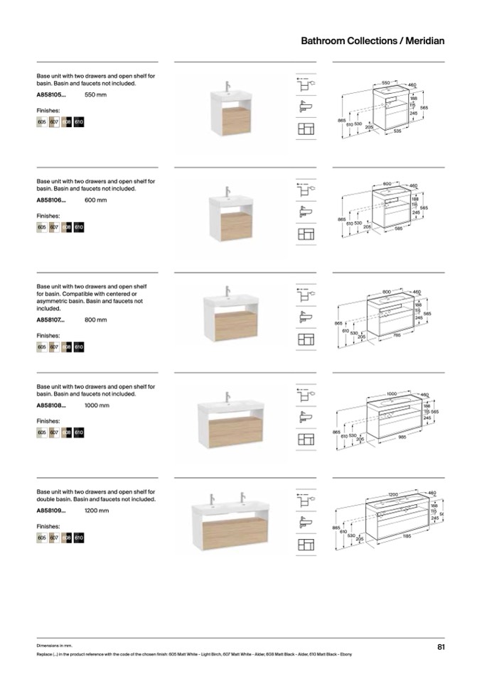 Replace (...) in the product reference with the code of the chosen finish: 605 Matt White - Light Birch, 607 Matt White - Alder, 608 Matt Black - Alder, 610 Matt Black - Ebon