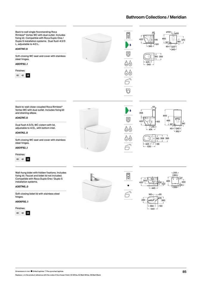 Replace (..) in the product reference with the code of the chosen finish: 00 White, 62 Matt White, 08 Matt Black