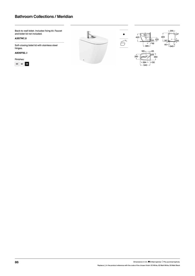 Replace (..) in the product reference with the code of the chosen finish: 00 White, 62 Matt White, 08 Matt Black