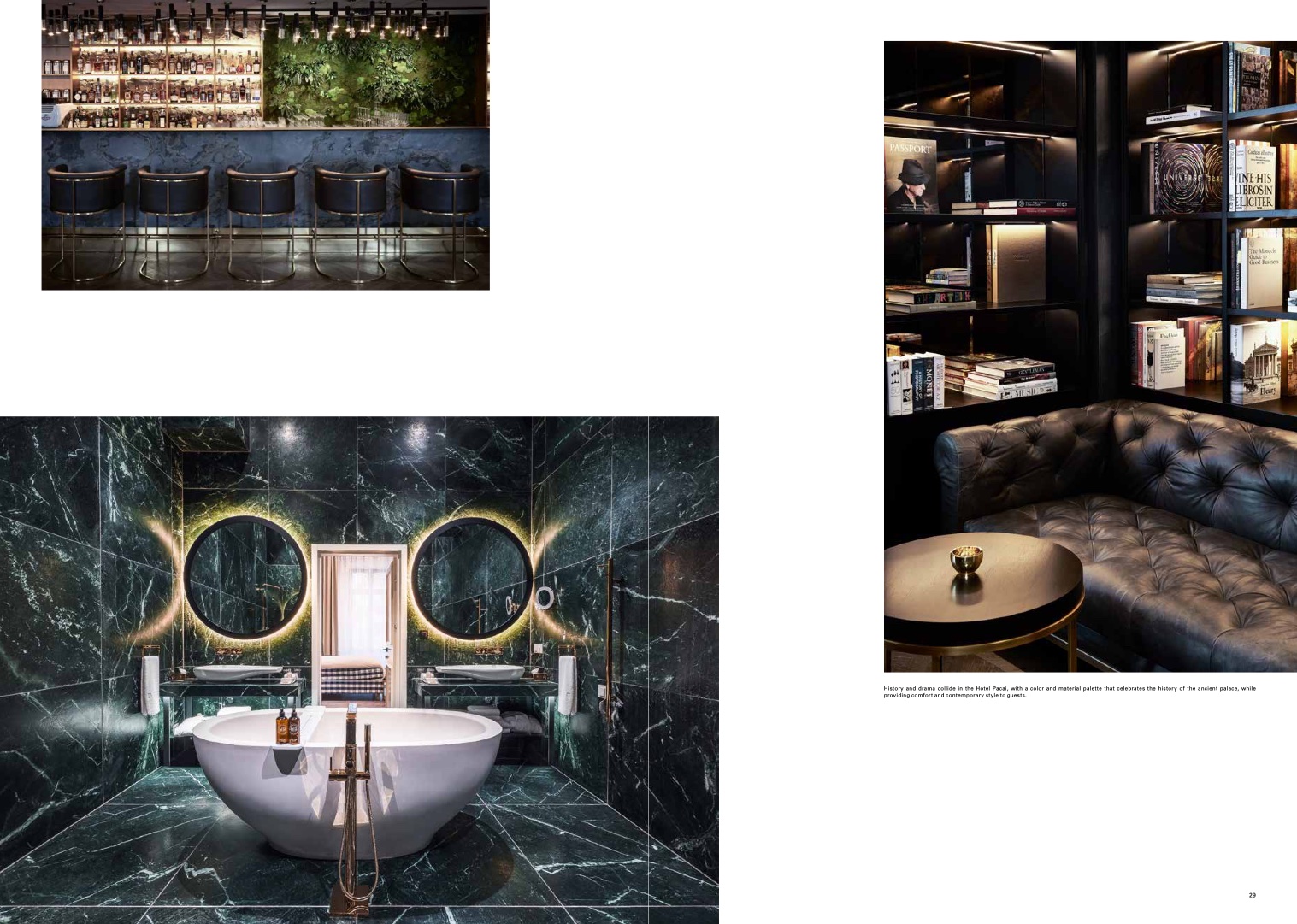 History and drama collide in the Hotel Pacai, with a color and material palette that celebrates the history of the ancient palace, whil