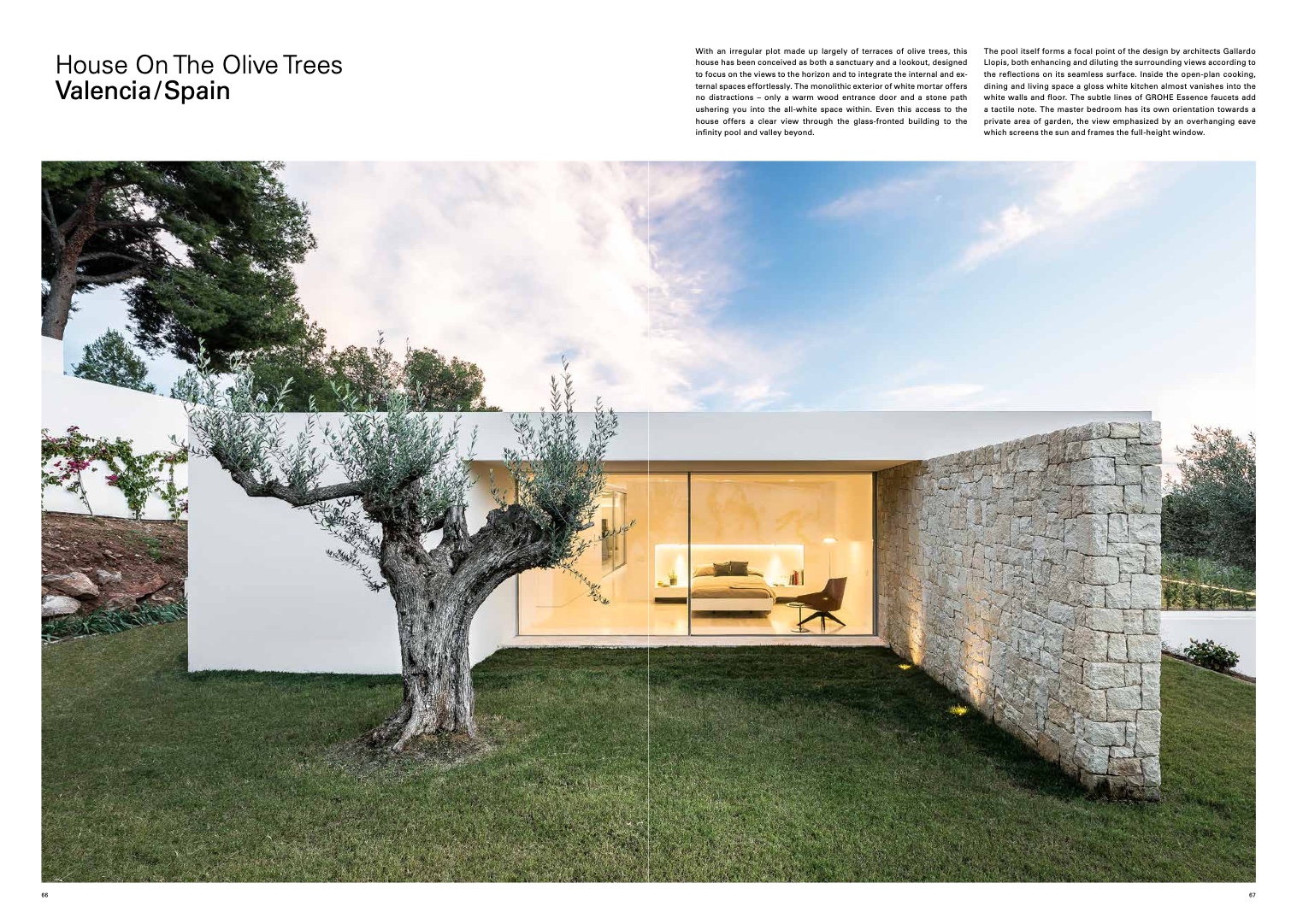 ternal spaces effortlessly. The monolithic exterior of white mortar offers