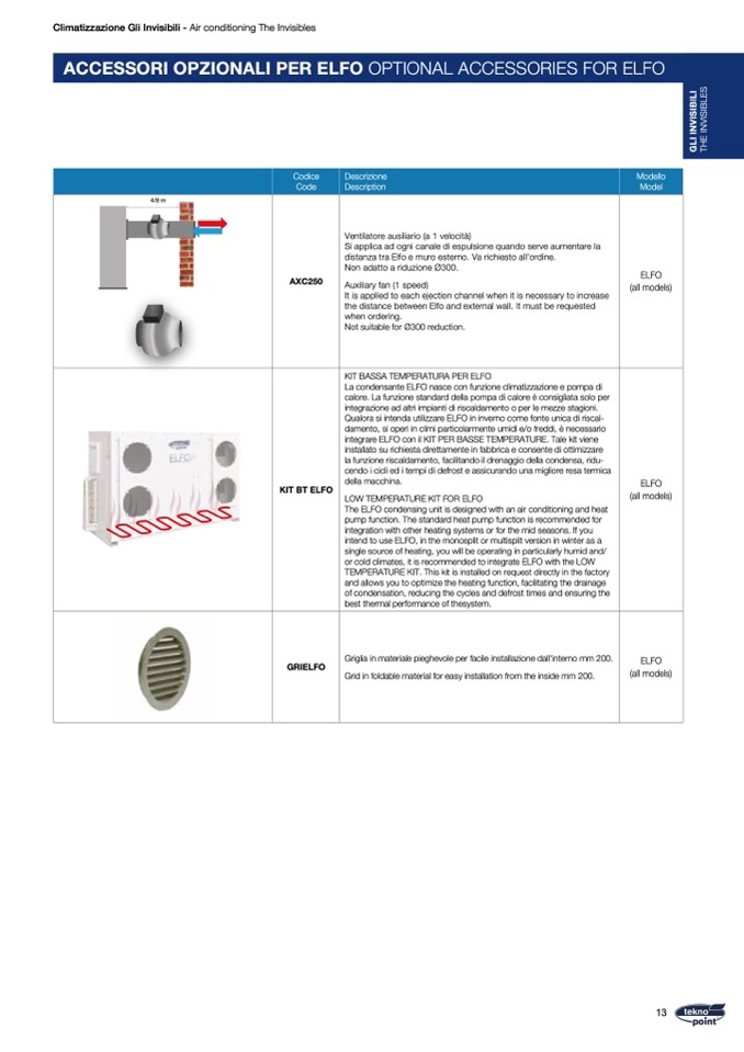 integrare ELFO con il KIT PER BASSE TEMPERATURE. Tale kit viene