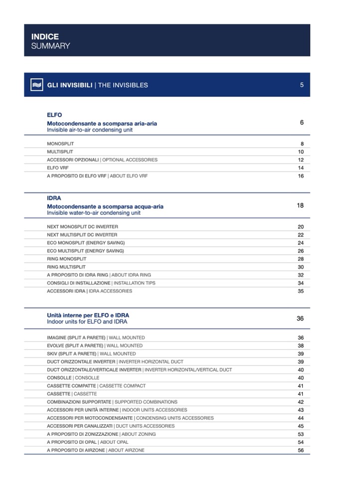 Indoor units for ELFO and IDRA