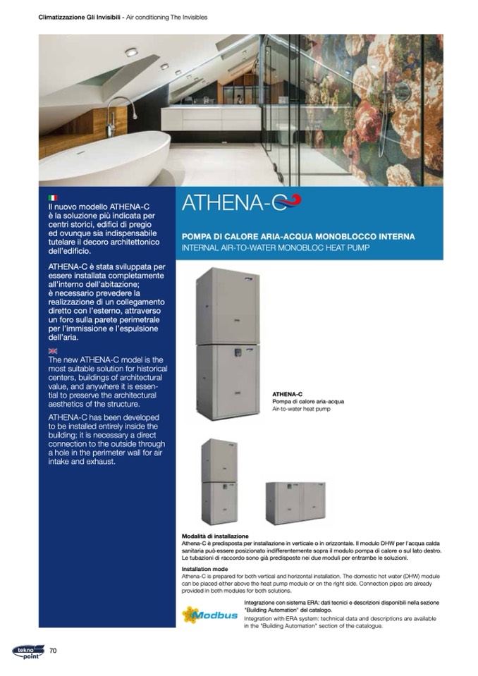 Athena-C is prepared for both vertical and horizontal installation. The domestic hot water (DHW) module