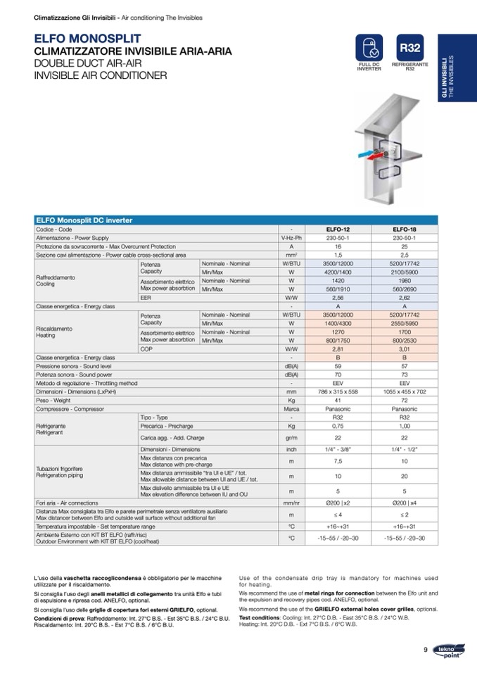 Condizioni di prova: Raffreddamento: Int. 27°C B.S. - Est 35°C B.S. / 24°C B.U.