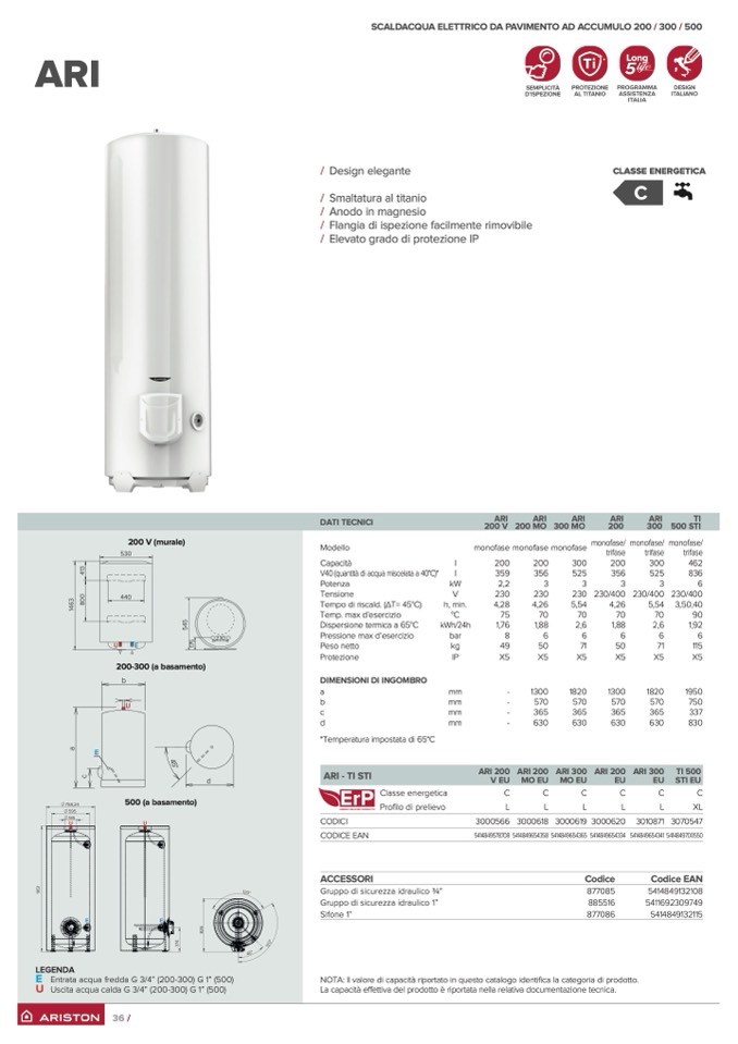 SCALDACQUA ELETTRICO DA PAVIMENTO AD ACCUMULO 200 / 300 / 500