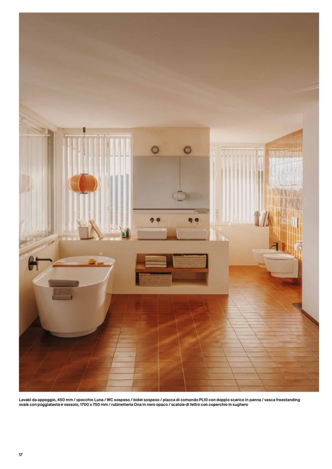Lavabi da appoggio, 450 mm / specchio Luna / WC sospeso / bidet sospeso / placca di comando PL10 con doppio scarico in panna / vasca freestanding