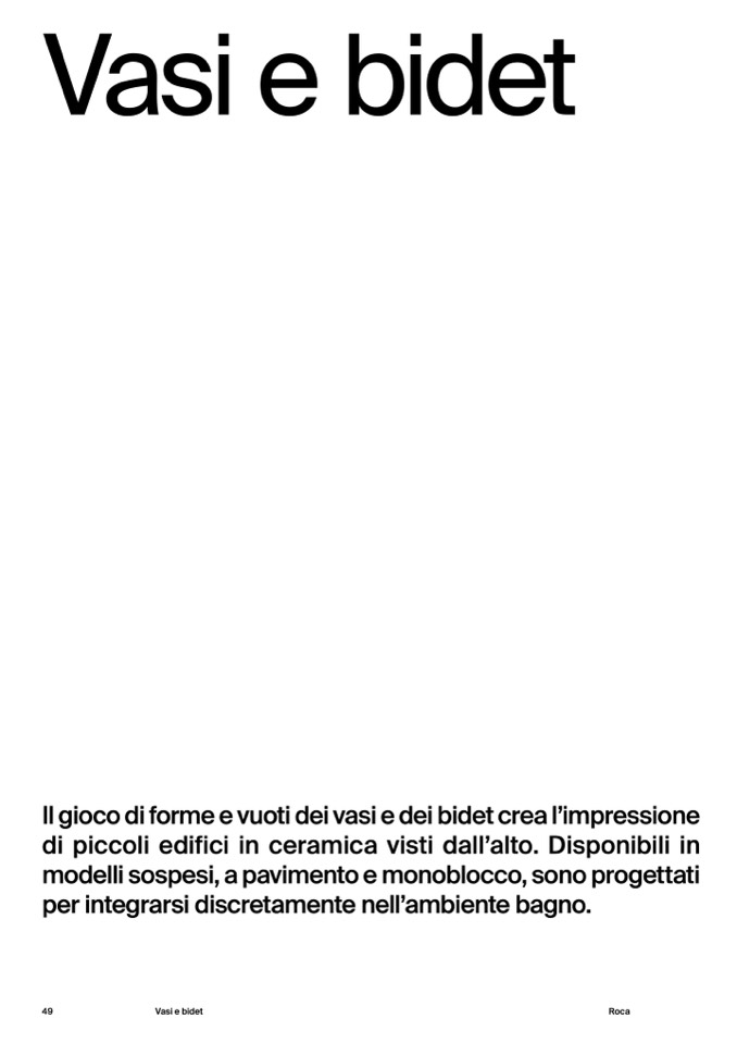 Il gioco di forme e vuoti dei vasi e dei bidet crea l’impressione