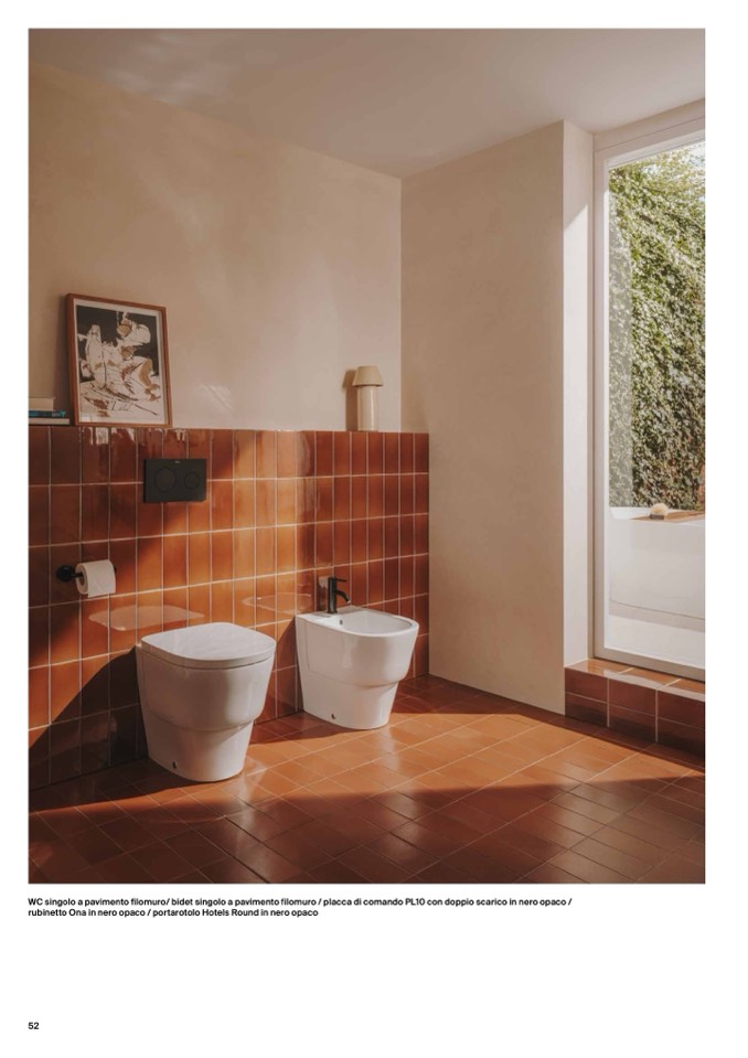 WC singolo a pavimento filomuro/ bidet singolo a pavimento filomuro / placca di comando PL10 con doppio scarico in nero opaco /