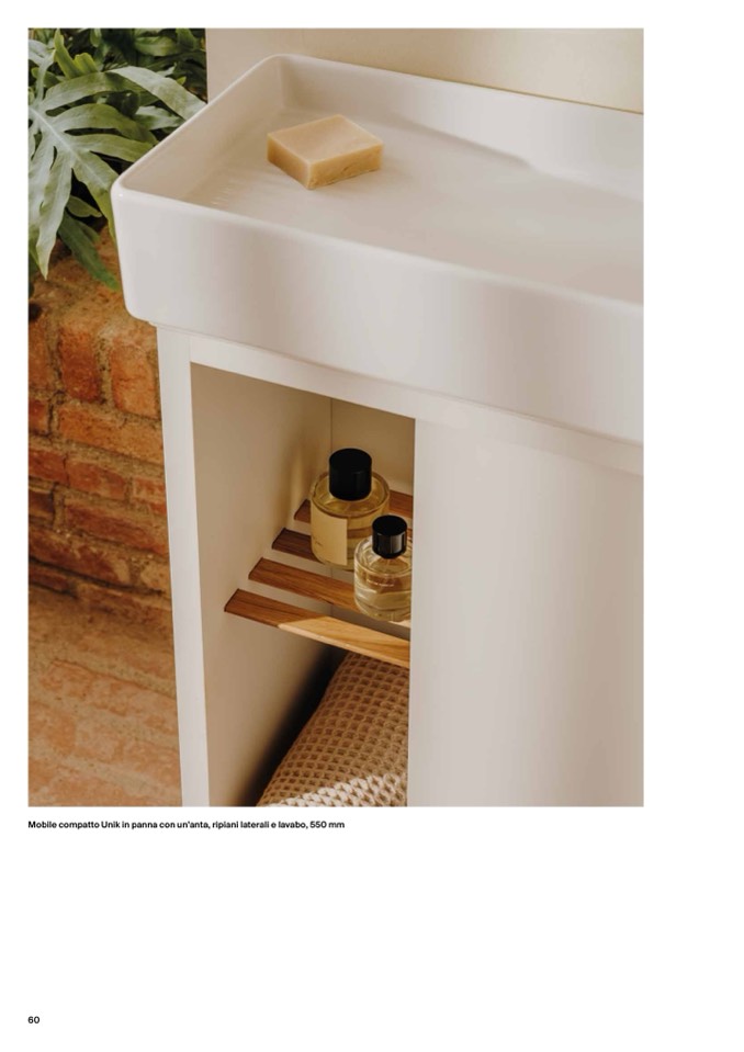Mobile compatto Unik in panna con un’anta, ripiani laterali e lavabo, 550 mm