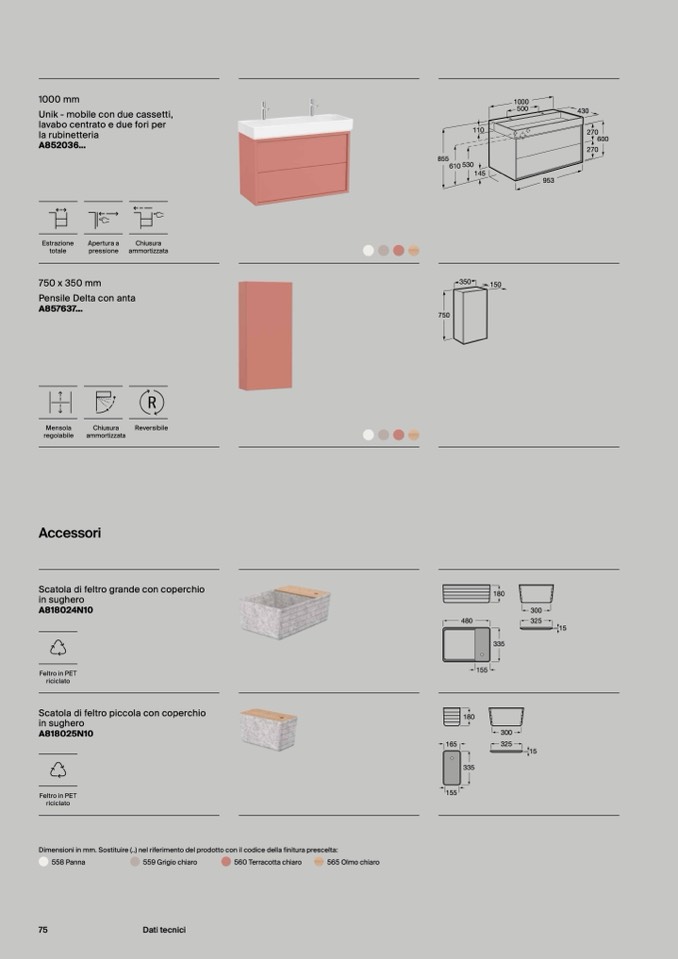 Dimensioni in mm. Sostituire (..) nel riferimento del prodotto con il codice della finitura prescelta: