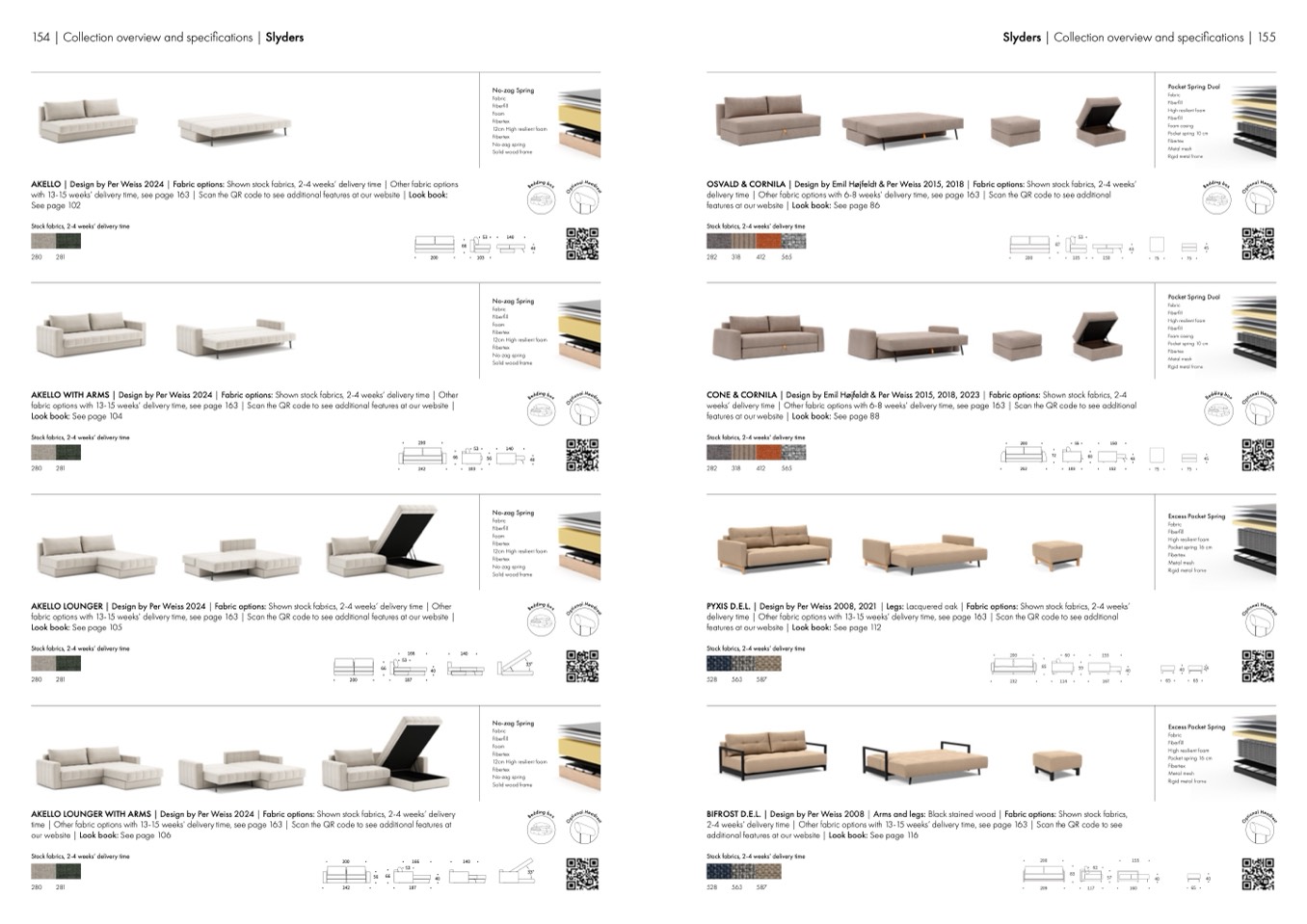 with 13-15 weeks’ delivery time, see page 163 | Scan the QR code to see additional features at our website | Look book: