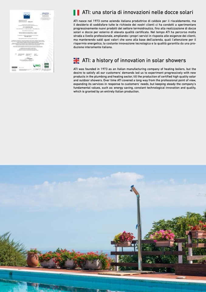 solari e docce per esterno di elevata qualità certificata. Nel tempo ATI ha percorso molta
