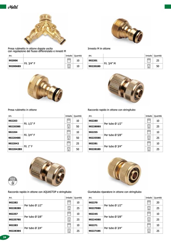 Raccordo rapido in ottone con AQUASTOP e stringitubo