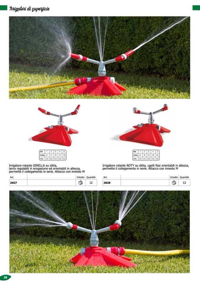 Irrigatore rotante ROTY su slitta, ugelli fissi orientabili in altezza,