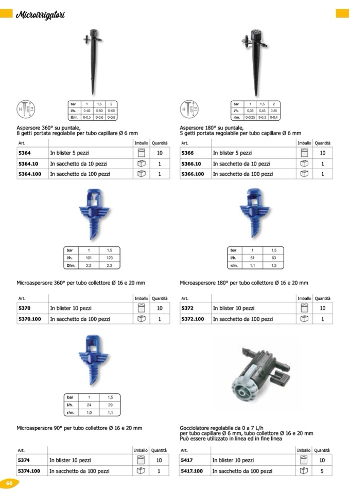 Microaspersore 180° per tubo collettore Ø 16 e 20 mm