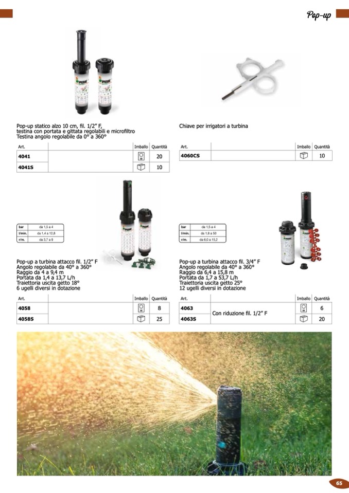 Chiave per irrigatori a turbina