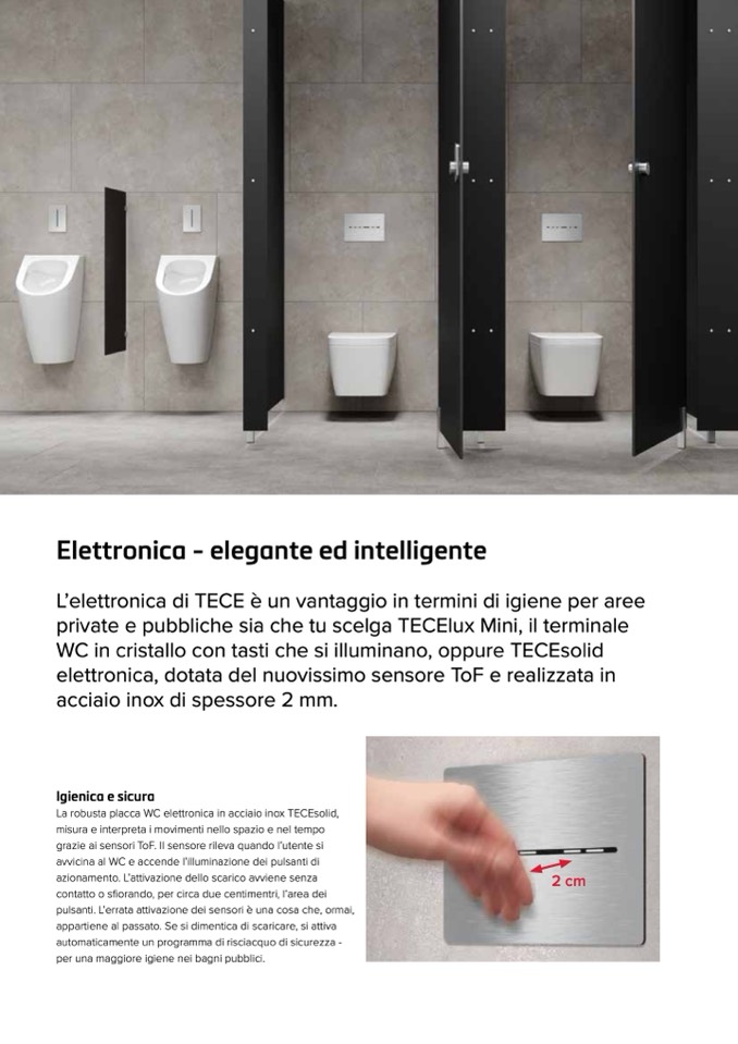 La robusta placca WC elettronica in acciaio inox TECEsolid,