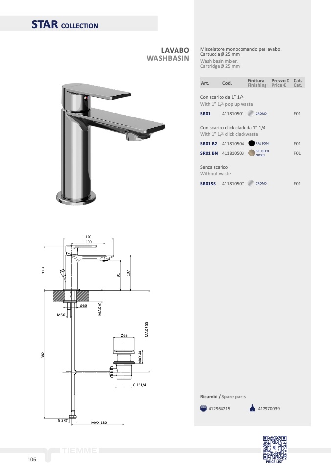 Miscelatore monocomando per lavabo.