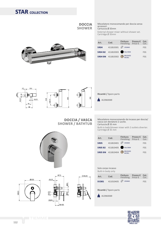 Miscelatore monocomando da incasso per doccia/